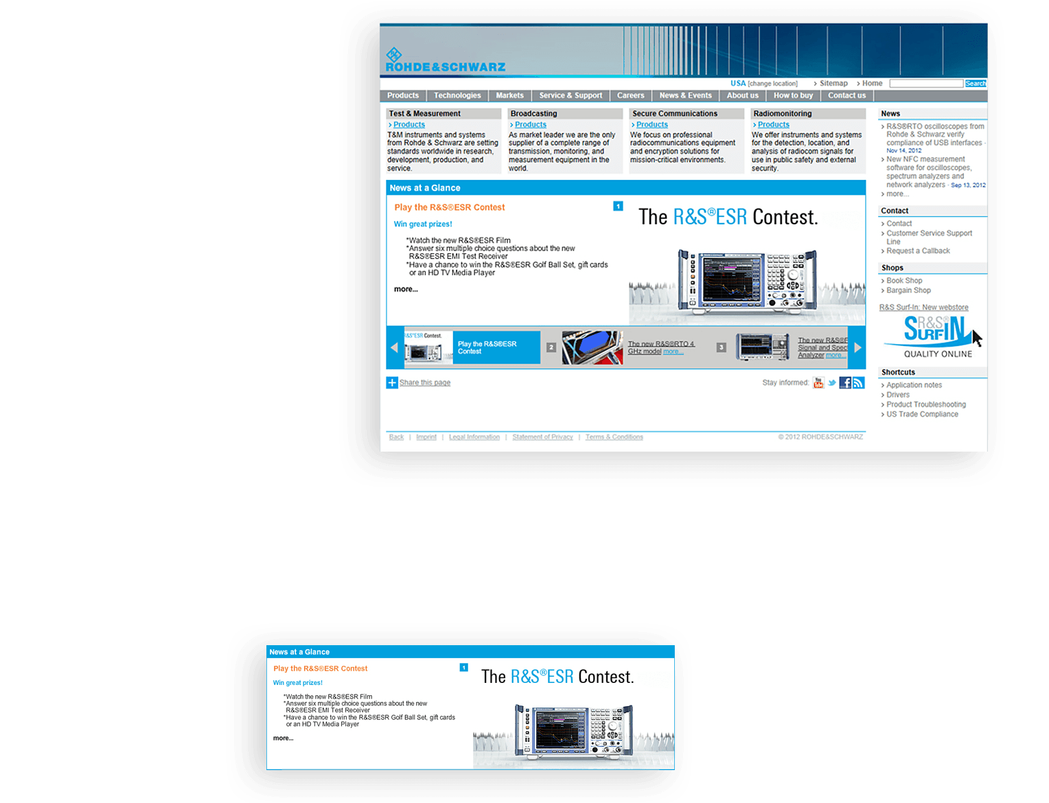 R&S以極簡設(shè)計主義為核心,簡化所有繁冗設(shè)計,重點表現(xiàn)產(chǎn)品和技術(shù),快速引導(dǎo)用戶瀏覽信息。