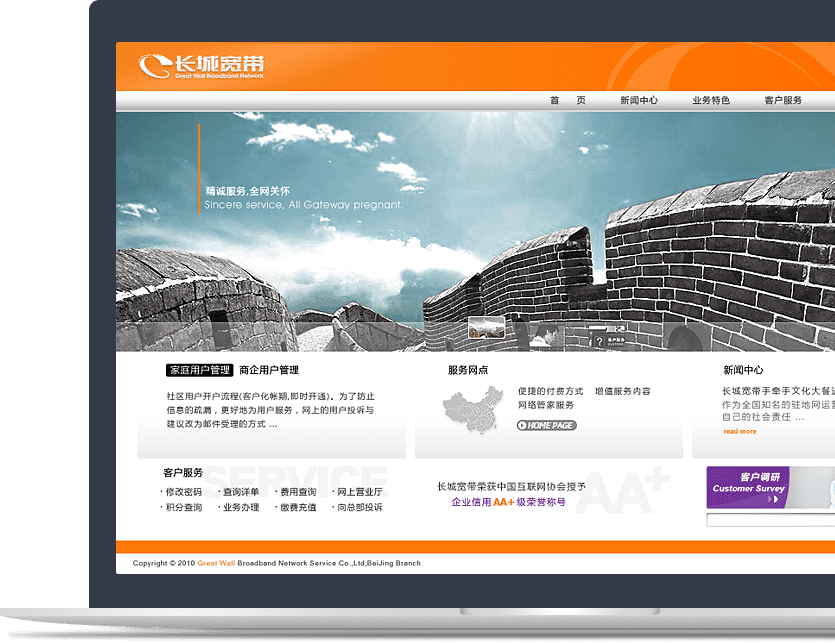 新鴻儒以用戶體驗為核心,為長城寬帶規(guī)劃,設(shè)計,開發(fā)品牌官網(wǎng),助力長城寬