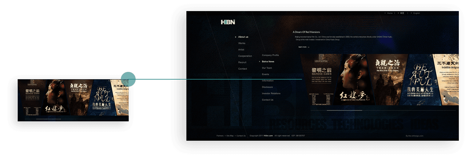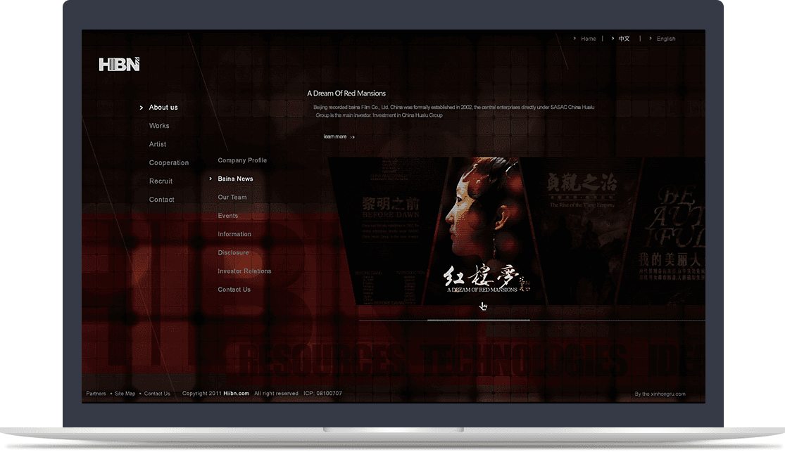 首頁banner進(jìn)行藝術(shù)化創(chuàng)作,通過輪播切換的方式展示華錄百納的知名作品,以作品帶動品牌,強化企業(yè)品牌價值