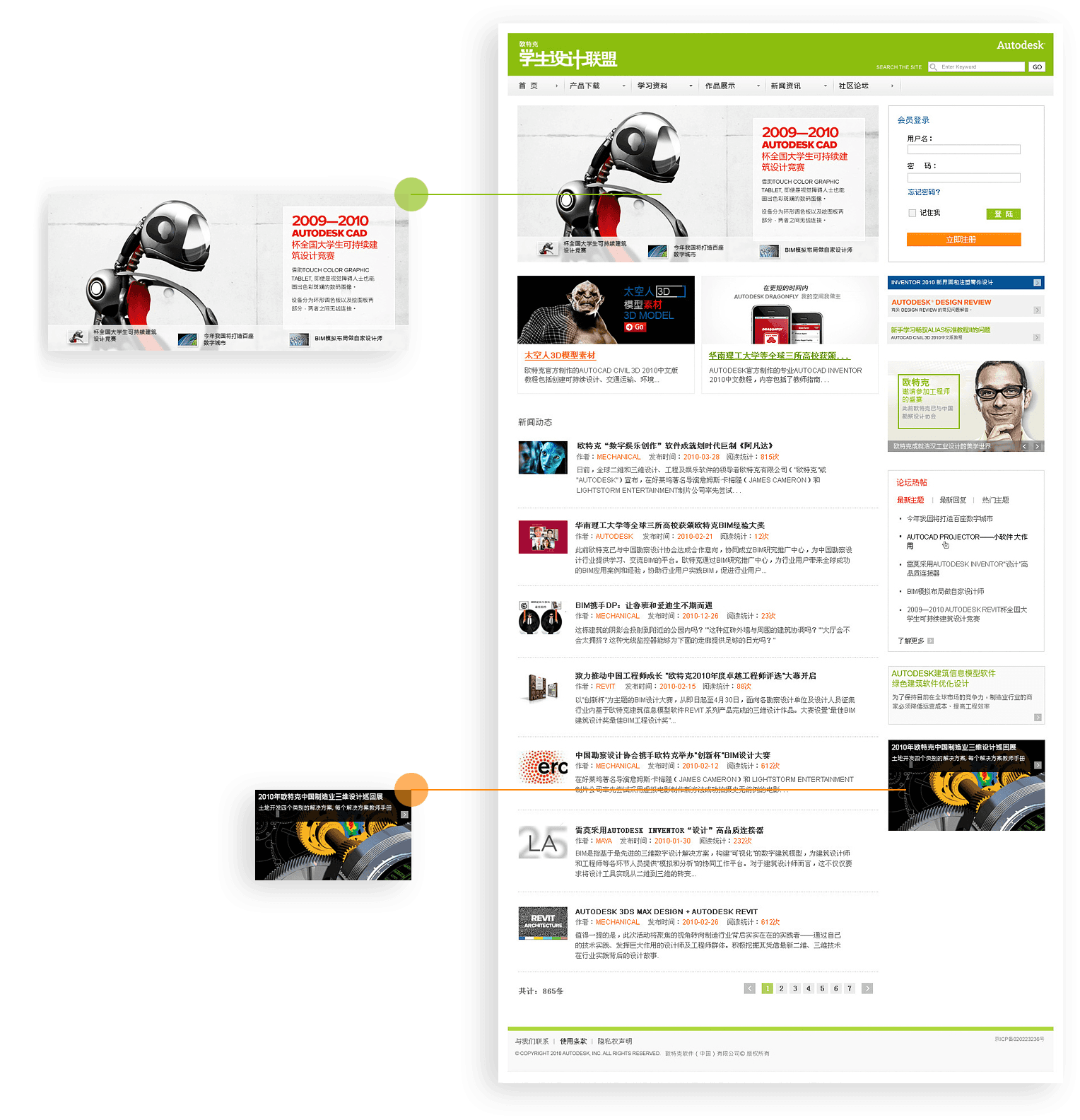 歐特克學(xué)生設(shè)計聯(lián)盟網(wǎng)站以平臺運(yùn)營思 路為核心,設(shè)置多個主題活動、營銷互動功能模 塊為后續(xù)平臺發(fā)展奠定基礎(chǔ)。同時,新鴻儒長期為其提 供運(yùn)維服務(wù)支持,保障社區(qū)平臺穩(wěn)定運(yùn)營。