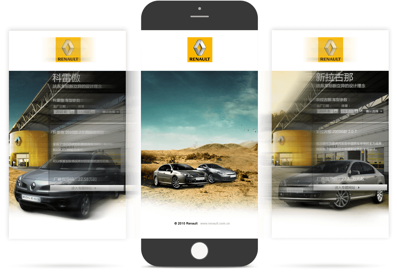 雷諾汽車品牌官網(wǎng)與互動(dòng)平臺(tái)的有機(jī)結(jié)合,用品牌官網(wǎng)傳遞雷諾品牌價(jià)值。