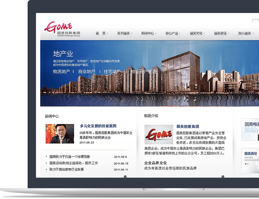 國美控股集團網(wǎng)站主視覺采用視頻互動技術(shù), 有效傳達國美控股集團整體品牌形象。整站運用大量動態(tài)展示 效果,增強網(wǎng)站的互動體驗。