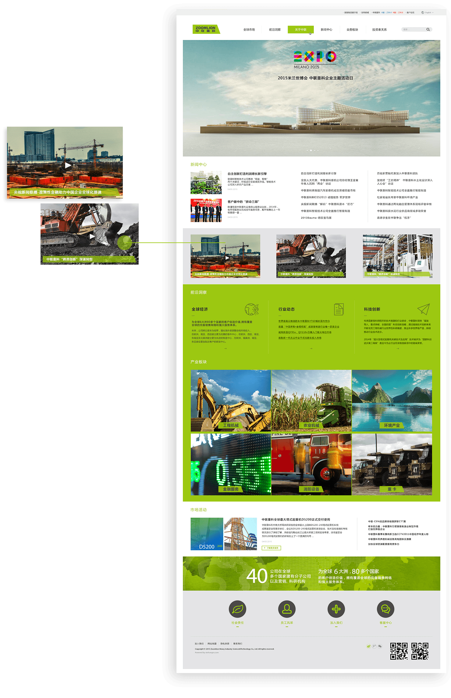 網(wǎng)站針對【關于中聯(lián)】頻道采用圖片、文字、視頻等多種元素結合的表現(xiàn)方式,塑造更加立體、多元、多維度的企業(yè)形象。