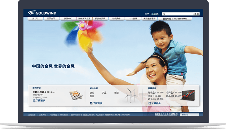 網(wǎng)站整體設(shè)計(jì)契合企業(yè)的領(lǐng)域?qū)傩裕骖櫰放婆c產(chǎn)品雙重需求,視覺效果簡(jiǎn)潔大氣,成 功塑造金風(fēng)科技創(chuàng)新、科技、國(guó)際化的品牌形象。