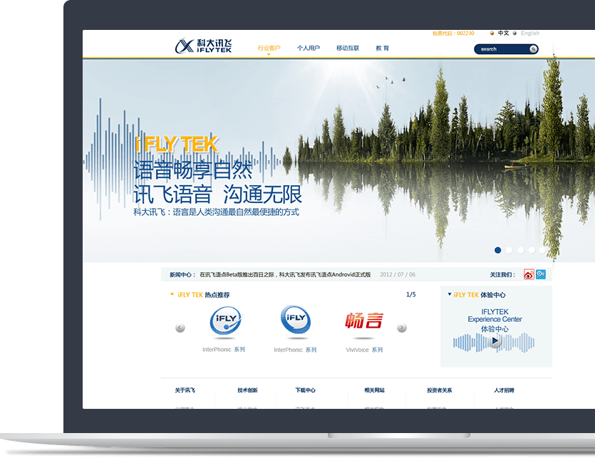 科大訊飛整體頁面簡潔、信息高效,互動性效果強!