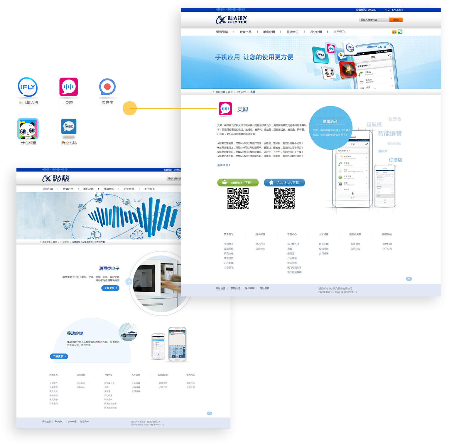 網(wǎng)站以藍(lán)色為主要色調(diào),以“語音引擎-教育產(chǎn)品 -手機應(yīng)用-互動音樂-行業(yè)應(yīng)用-關(guān)于訊飛”為主要欄目導(dǎo)航, 既宣傳了產(chǎn)品,又樹立了企業(yè)品牌形象,同時取得了和用戶進(jìn)行相關(guān)語音產(chǎn)品知識普及的互動效果,幫助語音技術(shù)在互聯(lián)網(wǎng) 開辟了新的傳播陣地。