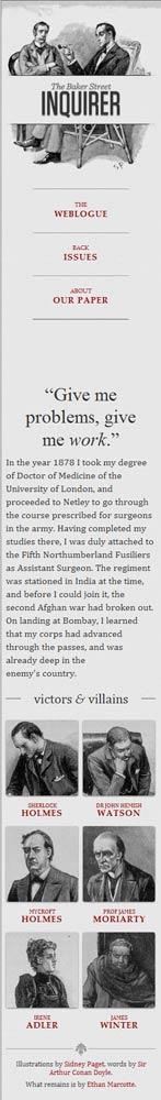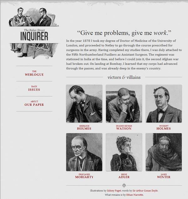 他制作了一個(gè)范例,里面是《福爾摩斯歷險(xiǎn)記》六個(gè)主人公的頭像。如果屏幕寬度大于1300像素,則6張圖片并排在一行。