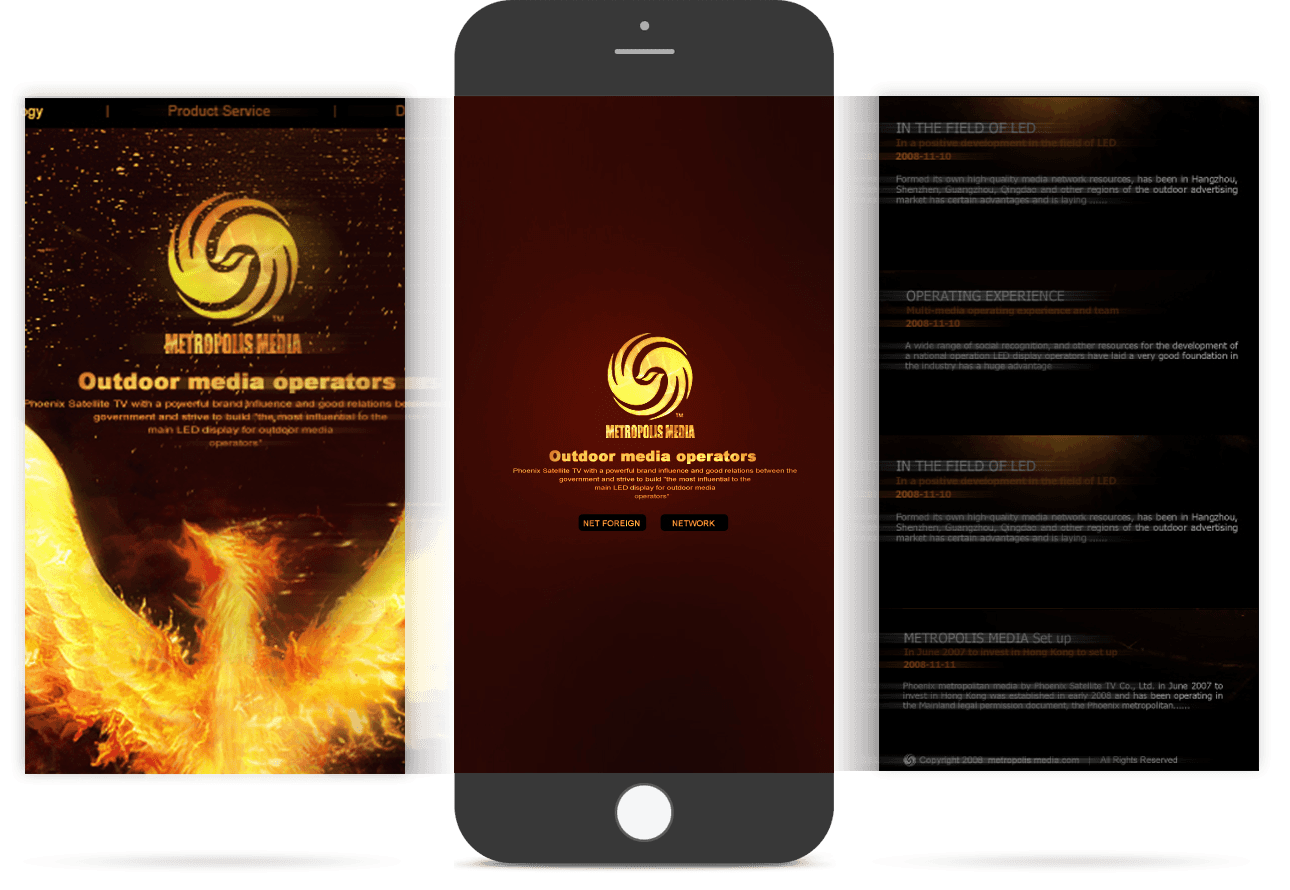 官網(wǎng)以鳳凰傳媒的標(biāo)志性圖標(biāo)和鳳凰圖案作為創(chuàng)意靈感,通過熾熱的火鳳凰表現(xiàn)鳳凰都市傳媒澎湃的新聞熱情和敢于承擔(dān)的社會責(zé)任。頁面視覺感官效果和鳳凰都市傳媒品牌調(diào)性高度吻合,成為鳳凰都市傳媒在互聯(lián)網(wǎng)領(lǐng)域閃亮的名片。