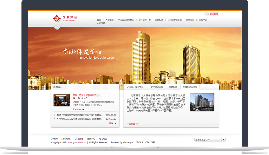 網(wǎng)站整體穩(wěn)重大氣,簡潔干凈,成功塑造了國測集團多元化的互聯(lián)網(wǎng)品牌形象