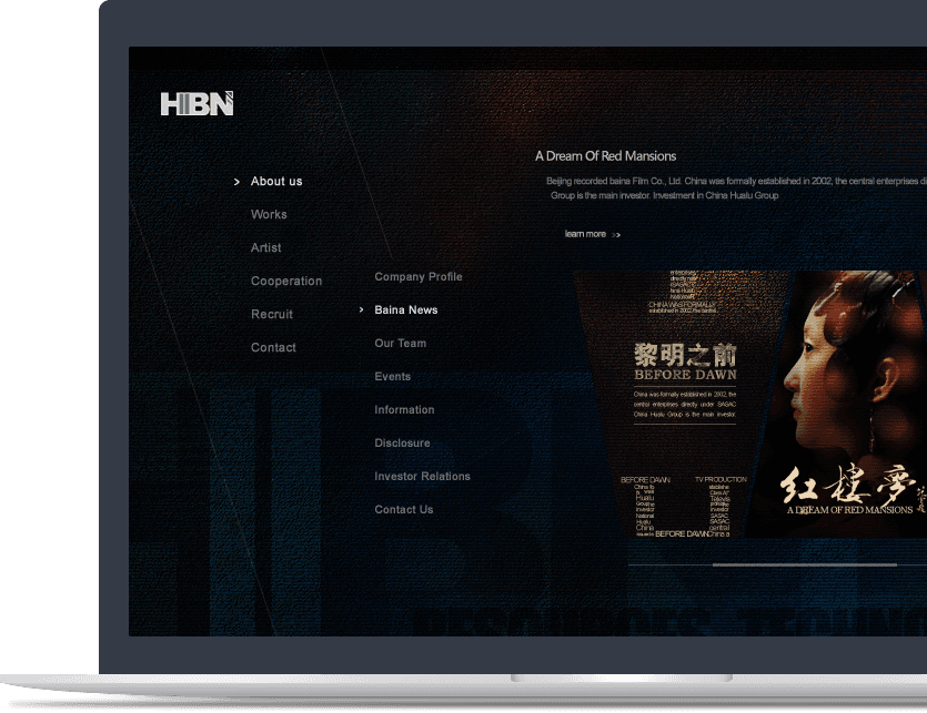 首頁banner進(jìn)行藝術(shù)化創(chuàng)作,通過輪播切換的方式展示華錄百納的知名作品,以作品帶動品牌,強化企業(yè)品牌價值