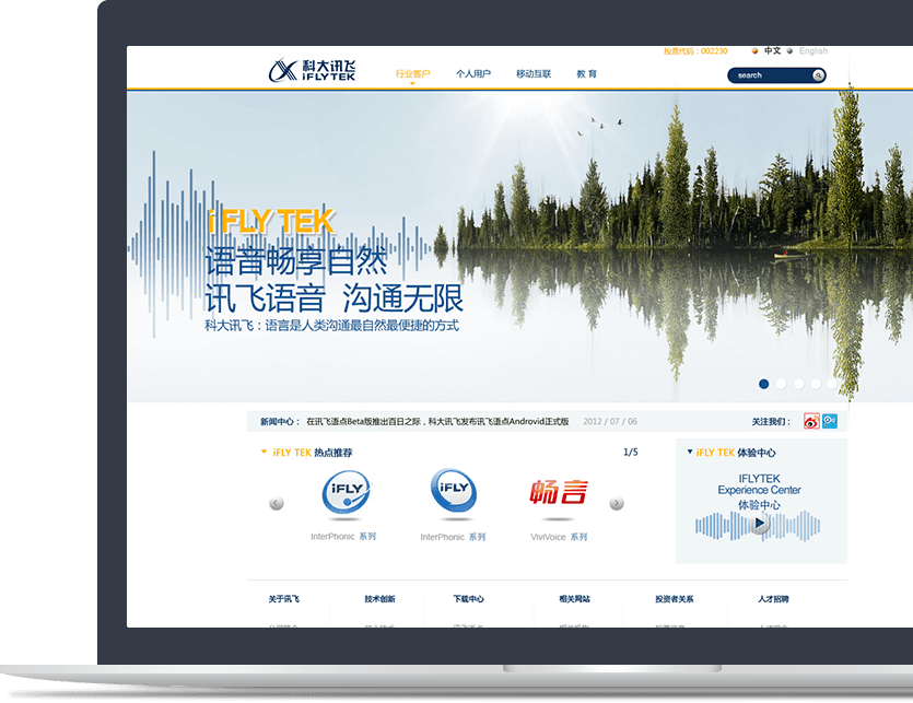 科大訊飛整體頁(yè)面簡(jiǎn)潔、信息高效,互動(dòng)性效果強(qiáng)!
