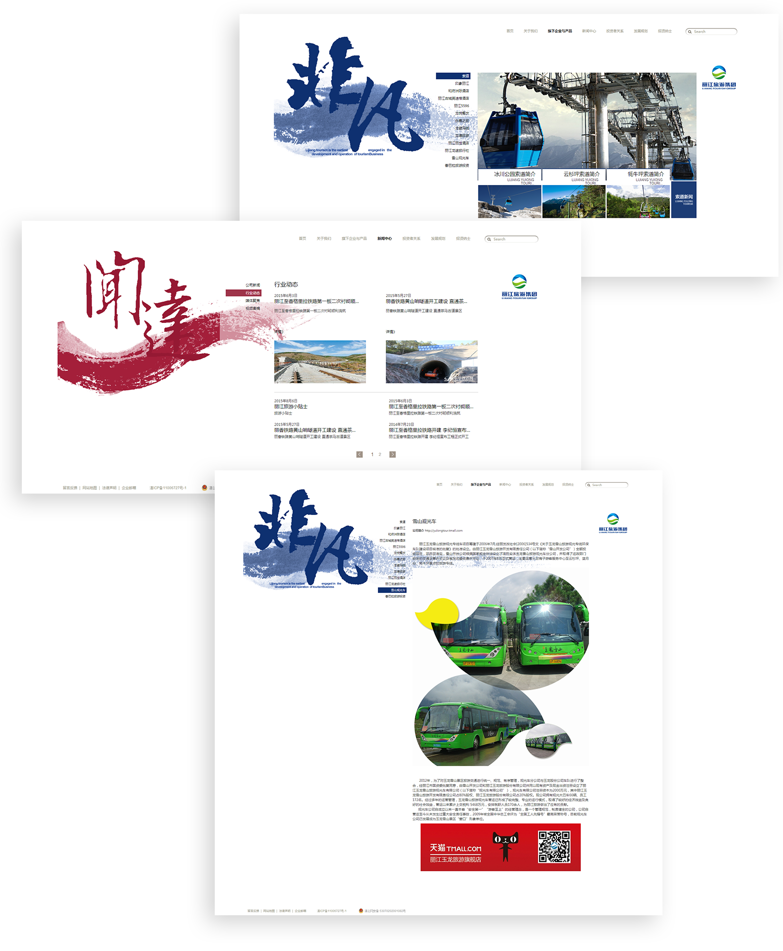 新鴻儒利用全屏背景圖的首頁(yè)設(shè)計(jì)方式,展示麗江玉龍的企業(yè)品牌形象以及麗江特色美景,將傳統(tǒng)與時(shí)尚結(jié)合,將古典與現(xiàn)代結(jié)合,成功打造了一個(gè)高品質(zhì)旅游類企業(yè)官網(wǎng)。