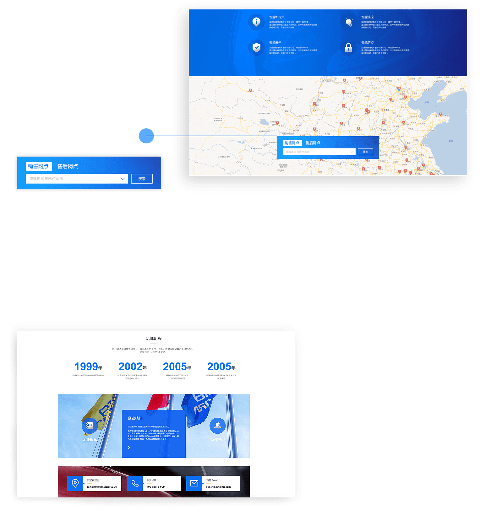 新日電動車官網(wǎng)調(diào)取百度地圖實時數(shù)據(jù),通過標(biāo)簽定位的方式,實現(xiàn)銷售網(wǎng)點、售后網(wǎng)點的查詢,極大的方便了用戶,提升了服務(wù)質(zhì)量和銷售渠道。