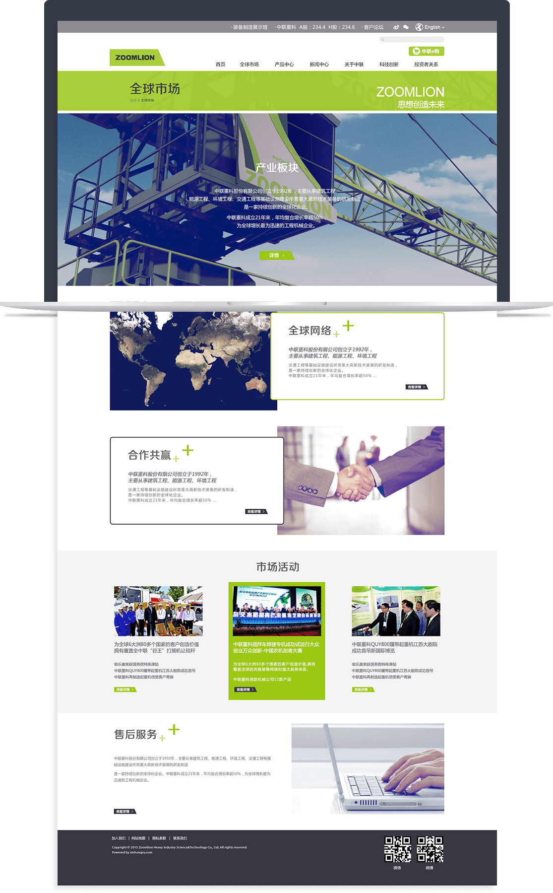 新鴻儒為中聯(lián)重科打造現(xiàn)代化、科技感的集團(tuán)官網(wǎng)——以國(guó)際流行的扁平化和色塊方格的長(zhǎng)布局為核心,通過(guò)錯(cuò)落排版的圖片