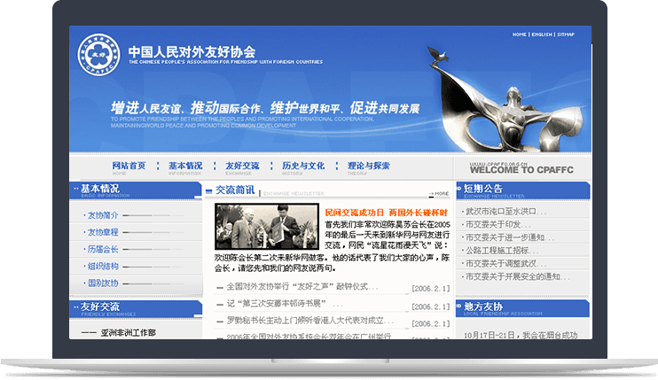 中國(guó)人民對(duì)外友好協(xié)會(huì)攜手新鴻儒,通過(guò)打造官網(wǎng),建立中外人民的交流窗口、互動(dòng)專區(qū)和在線服務(wù)平臺(tái)