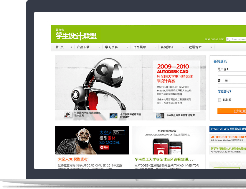 新鴻儒打造歐特克學(xué)生設(shè)計聯(lián)盟社區(qū)平臺,實(shí)現(xiàn)在線溝通、互動評論、在線課程、產(chǎn)品下載、 作品展示等功能,成為學(xué)生喜愛的技術(shù)社區(qū)平臺。