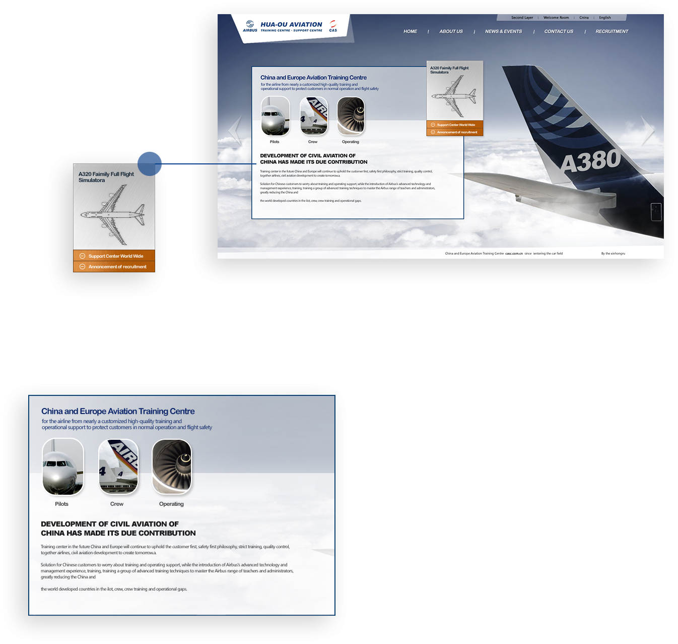 平臺(tái)以A380代表性圖片作為主視覺(jué)焦點(diǎn),有效傳達(dá)自身產(chǎn)品特征。并根據(jù)機(jī)長(zhǎng)交流學(xué)習(xí)需求,定制開(kāi)發(fā)平臺(tái)功能。