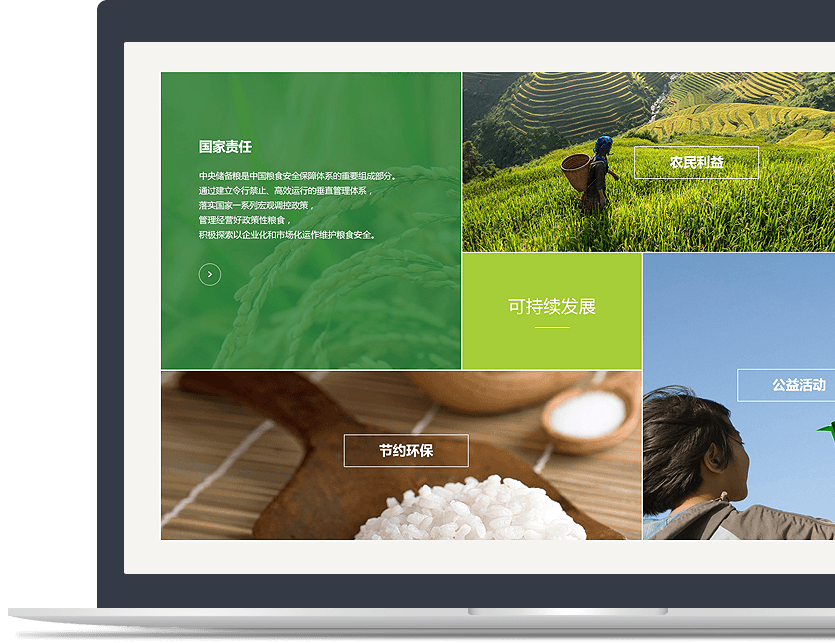 新鴻儒為中儲(chǔ)糧打造全新官網(wǎng),助力其構(gòu)建集購(gòu)、銷、調(diào)、存、加、研為一體的互聯(lián)網(wǎng)布局,塑造“智能糧倉(cāng)”的品牌新形象。