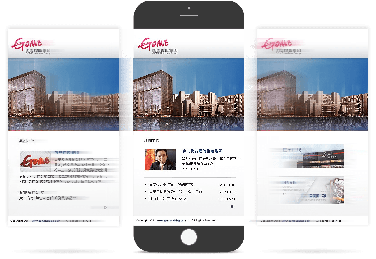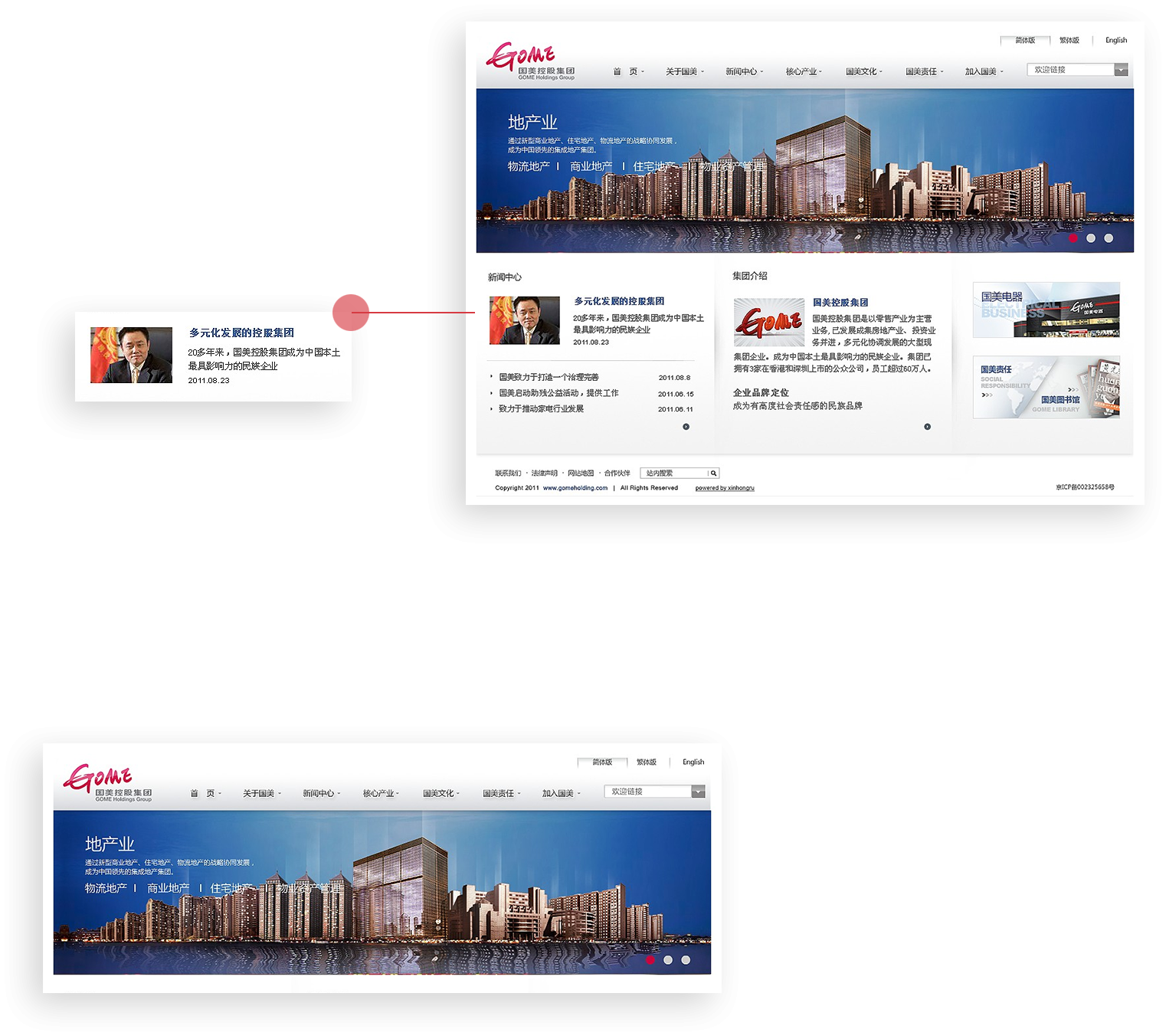國美控股集團網(wǎng)站主視覺采用視頻互動技術(shù), 有效傳達國美控股集團整體品牌形象。整站運用大量動態(tài)展示 效果,增強網(wǎng)站的互動體驗。