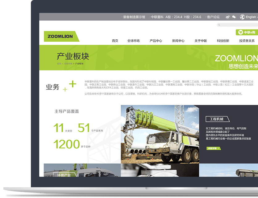 新鴻儒為中聯(lián)重科打造現(xiàn)代化、科技感的集團官網(wǎng)——以國際流行的扁平化和色塊方格的長布局為核心,通過錯落排版的圖片 色塊相對均勻地吸引用戶的注意力,并以扁平化的處理方式讓每個元素更加易用、易辨識,突出核心內(nèi)容。