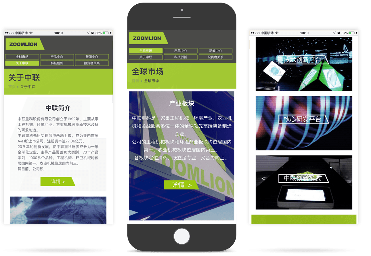 網(wǎng)站針對【關于中聯(lián)】頻道采用圖片、文字、視頻等多種元素結合的表現(xiàn)方式,塑造更加立體、多元、多維度的企業(yè)形象。