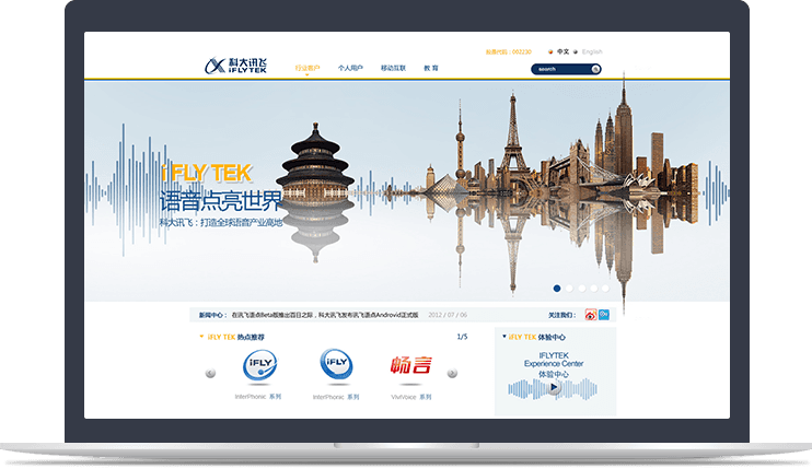 科大訊飛整體頁面簡潔、信息高效,互動性效果強!