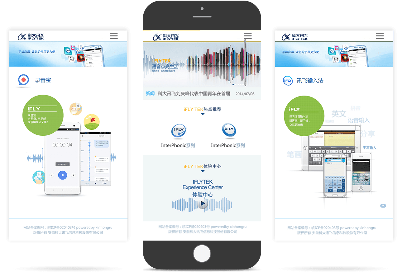 網(wǎng)站以藍(lán)色為主要色調(diào),以“語音引擎-教育產(chǎn)品 -手機應(yīng)用-互動音樂-行業(yè)應(yīng)用-關(guān)于訊飛”為主要欄目導(dǎo)航, 既宣傳了產(chǎn)品,又樹立了企業(yè)品牌形象,同時取得了和用戶進(jìn)行相關(guān)語音產(chǎn)品知識普及的互動效果,幫助語音技術(shù)在互聯(lián)網(wǎng) 開辟了新的傳播陣地。