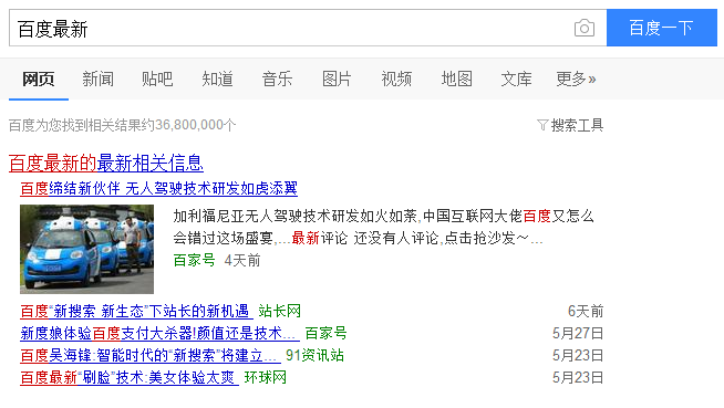 百度輸入“百度最新”點(diǎn)擊百度最新的最新相關(guān)信息進(jìn)入如下圖;