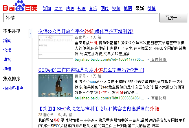 是不是就能看到很多最新“婚紗攝影”在論壇里面發(fā)布外鏈了,非常優(yōu)質(zhì)資源而且收錄很也快,高效、免費(fèi)。學(xué)會(huì)使用這一招再也不用擔(dān)心找不到優(yōu)質(zhì)的外鏈資源了。