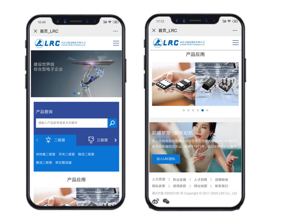 樂山無線電股份有限公司(簡稱LRC),創(chuàng)建于1971年,是以半導(dǎo)體分立器件為主產(chǎn)品的綜合型電子企業(yè)。LRC位于中國西部大開發(fā)中心地帶的歷史文化名城——四川樂山,從1993年起,LRC產(chǎn)品銷量便一直位居中國同行業(yè)前列,是中國西部著名的高速增長型企業(yè)、科技先導(dǎo)型企業(yè)和出口創(chuàng)匯企業(yè)。目前,LRC已持續(xù)快速發(fā)展壯大成為擁有多個獨資和合資公司的大型集團企業(yè)。