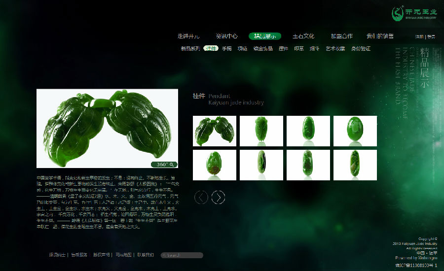 開元玉業(yè)進(jìn)入玉器行業(yè)已有數(shù)十年,公司在成立之始,本著一種嶄新的經(jīng)營理念和創(chuàng)新的經(jīng)營模式,立志為中國玉石界翻開嶄新的一頁,開辟新的紀(jì)元。開元玉業(yè)以“奮斗拼搏、永不言敗、勇于創(chuàng)新、追求完美”為企業(yè)精神,以“以誠為本、智慧創(chuàng)造、勤勞奉獻(xiàn)、高效進(jìn)步”為企業(yè)宗旨。其“以健康產(chǎn)業(yè)為主題,以電子商務(wù)為導(dǎo)向”的推廣原則正迎合了互聯(lián)網(wǎng)新時(shí)代特征和需求。