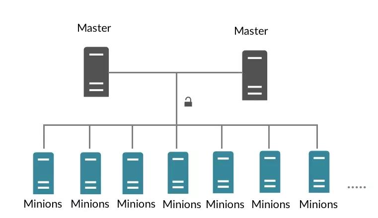 從部署結(jié)構(gòu)上看,SaltStack的在部署上可以分為master和minion兩個(gè)部分,其中master相當(dāng)于統(tǒng)領(lǐng)所有機(jī)器的總管,而minion則是部署在被管理機(jī)器上面的agent進(jìn)程,master通過網(wǎng)絡(luò)將配置管理相關(guān)的操作下發(fā)到minion,由minion在對應(yīng)機(jī)器的本地執(zhí)行。典型的部署例子如下圖所示: