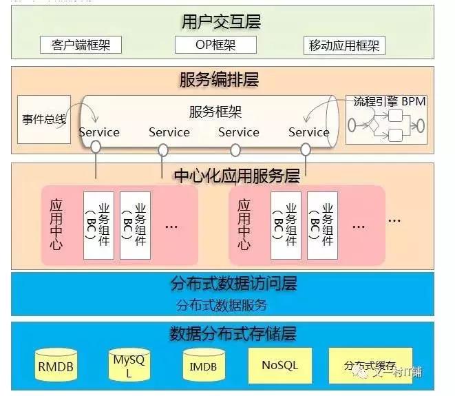 微服務(wù)架構(gòu)是對上面分布式云化架構(gòu)的拓展、服務(wù)化的進(jìn)一步延伸,通過對服務(wù)進(jìn)一步細(xì)化,形成微服務(wù),運(yùn)行于單獨(dú)的容器平臺,可實(shí)現(xiàn)云的彈性和敏捷,如彈性伸縮、線上線下一致的環(huán)境、提升自動化運(yùn)維能力等。